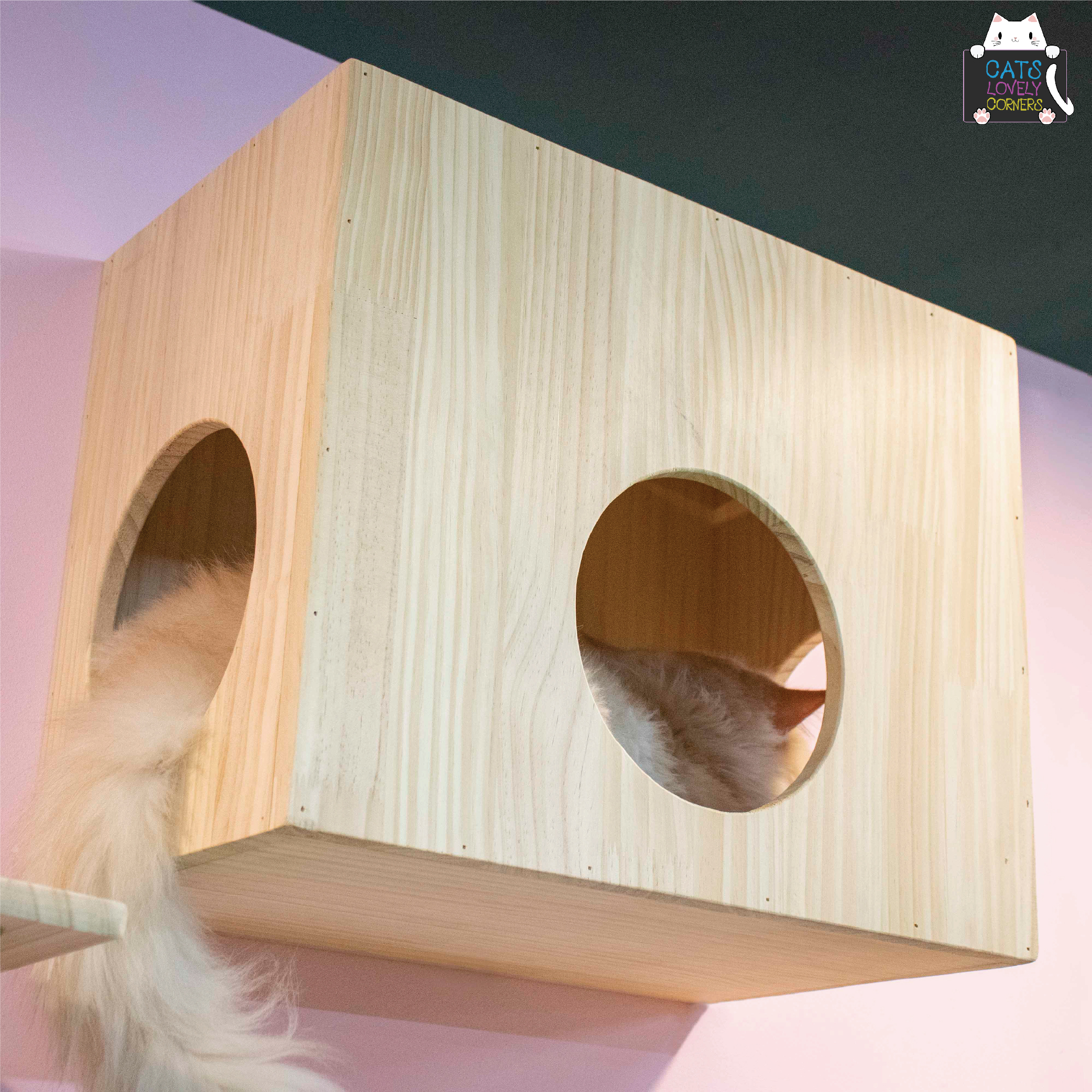 – กล่องแมวติดผนังไม้เนื้อแข็ง คุณภาพดี – แข็งแรง ทนทาน – ตามมุมขอบจะมน ไม่เป็นอันตรายทั้งคนและแมว – ติดตั้งได้เอง ไม่ยุ่งยาก
