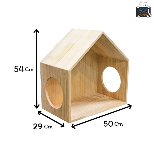 – กล่องแมวทรงบ้านติดผนังไม้เนื้อแข็ง คุณภาพดี – แข็งแรง ทนทาน – ตามมุมขอบจะมน ไม่เป็นอันตรายทั้งคนและแมว – ติดตั้งได้เอง ไม่ยุ่งยาก
