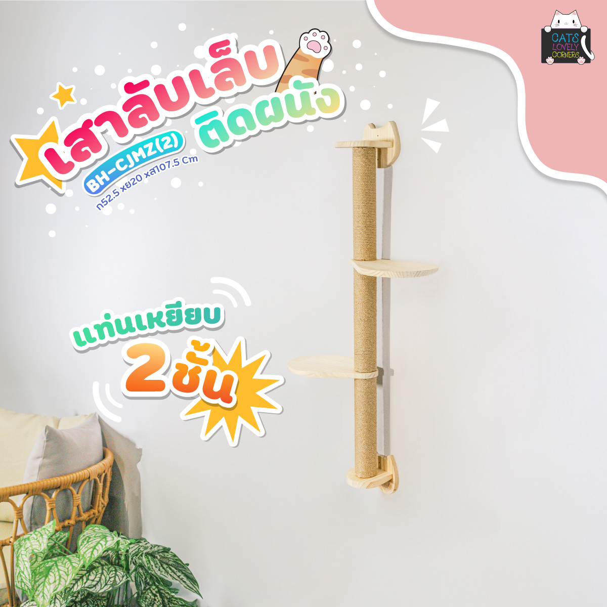 เสาลับเล็บติดผนัง แท่นเหยียบ 2 ขั้น
