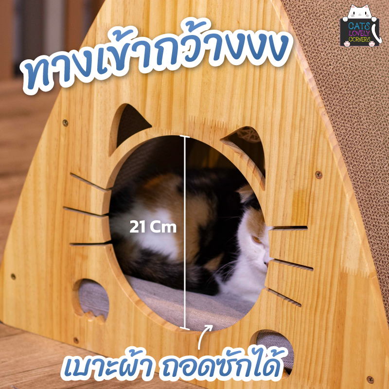 – บ้านแมวไม้เนื้อแข็ง คุณภาพดี ไม่แตกหักง่าย